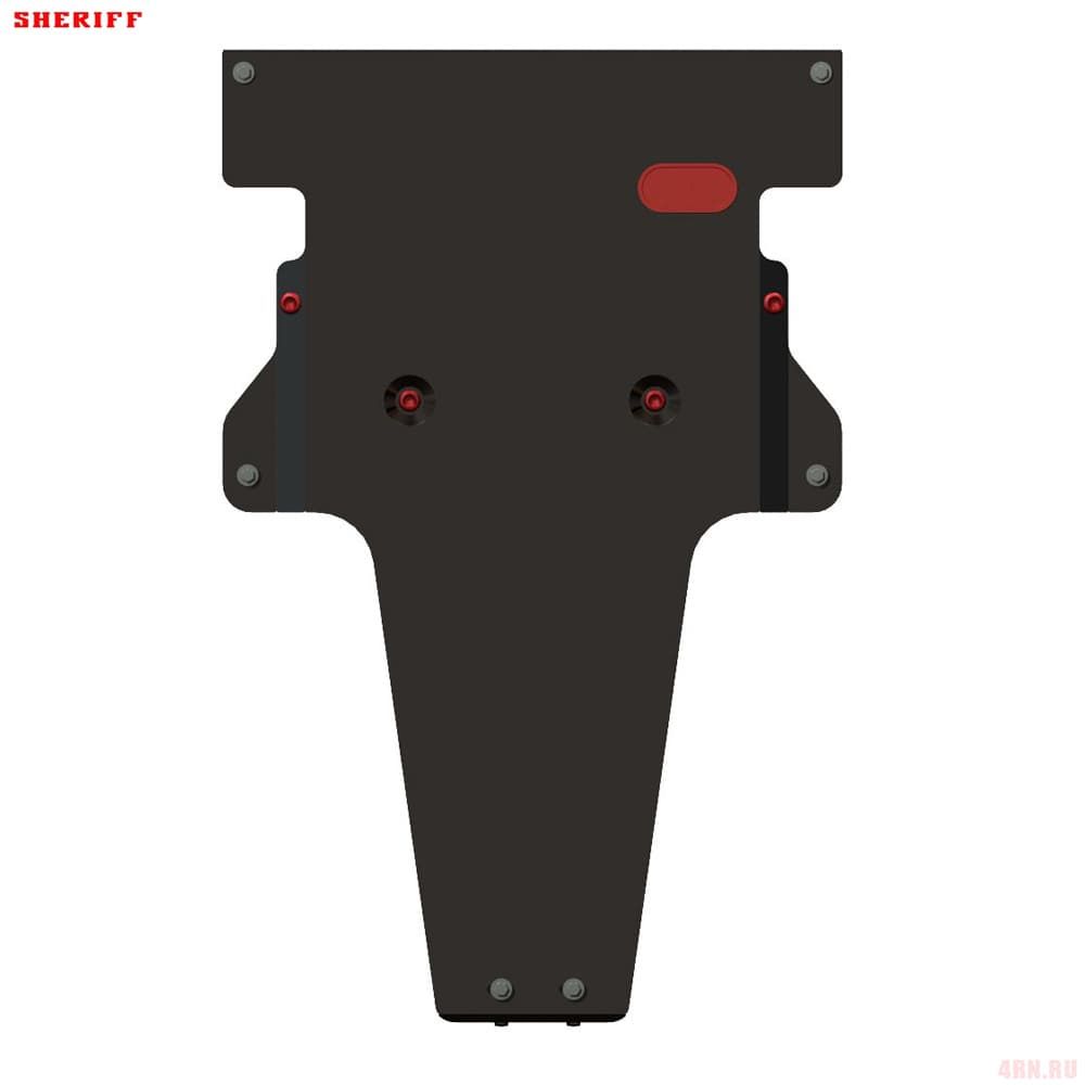 Защита картера Sheriff нужна для сохранности узлов и агрегатов, находящихся на днище авто. Она надежно защитит двигательный отсек вашей машины от повреждений. Также она защищает моторный отсек от влаги, грязи, и предусматривает наличие металлических крыльев, которые выполняют функцию пыльника.