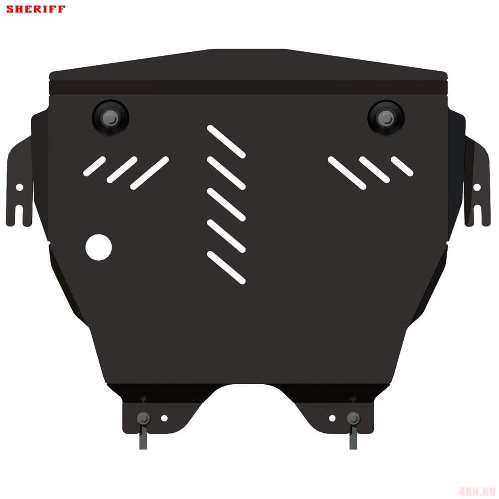 Защита картера Sheriff нужна для сохранности узлов и агрегатов, находящихся на днище авто. Она надежно защитит двигательный отсек вашей машины от повреждений. Также она защищает моторный отсек от влаги, грязи, и предусматривает наличие металлических крыльев, которые выполняют функцию пыльника.