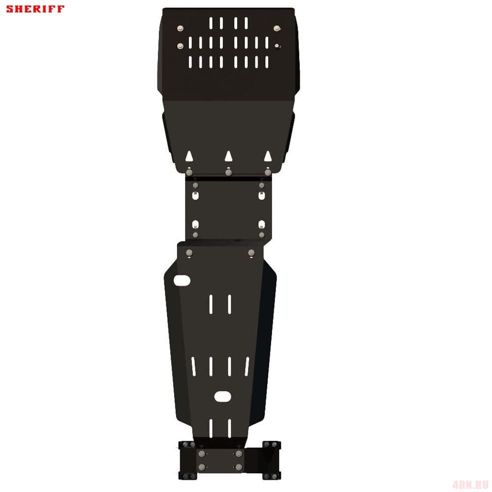 Защита картера Sheriff нужна для сохранности узлов и агрегатов, находящихся на днище авто. Она надежно защитит двигательный отсек вашей машины от повреждений. Также она защищает моторный отсек от влаги, грязи, и предусматривает наличие металлических крыльев, которые выполняют функцию пыльника.
