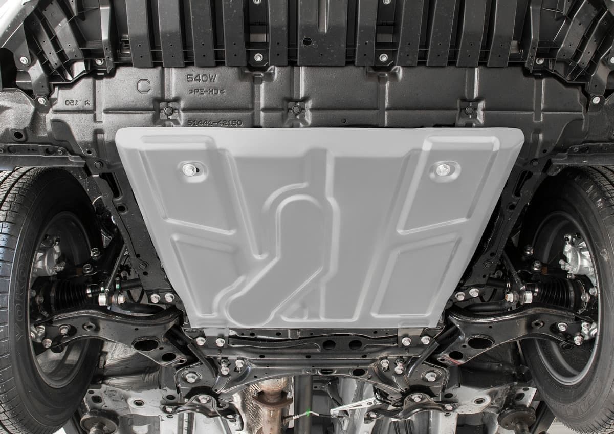Стойкое порошковое окрашивание позволяет сохранить внешний вид, защитит от царапин, предотвратит коррозию. Также имеется утопленный крепеж для предотвращения срывов. Крепеж не образует с алюминием гальваническую пару. Защита спроектирована индивидуально для автомобиля, что позволяет устанавливать ее в штатные места без доработки кузова за 10 мин.