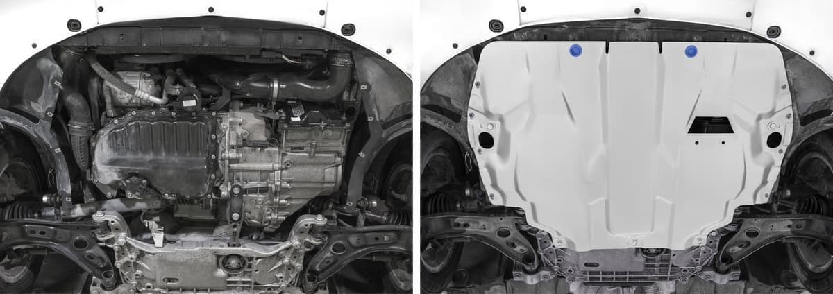 Стойкое порошковое окрашивание позволяет сохранить внешний вид, защитит от царапин, предотвратит коррозию. Также имеется утопленный крепеж для предотвращения срывов. Крепеж не образует с алюминием гальваническую пару. Защита спроектирована индивидуально для автомобиля, что позволяет устанавливать ее в штатные места без доработки кузова за 10 мин.