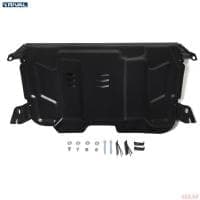 Порошковое окрашивание гарантирует долгий срок службы. А глубокий штамп увеличивает жесткость до 2,5 раз. Также имеется утопленный крепеж для предотвращения срывов. Качественная покраска защиты картера выдерживает 720 часов соляного тумана. Толщина изделия составляет 2-6 мм. Подштамповка в местах крепления предохраняет крепеж от срезания. Деталь спроектирована индивидуально для вашего автомобиля, что позволяет устанавливать ее в штатные места без доработки кузова за 10 мин.