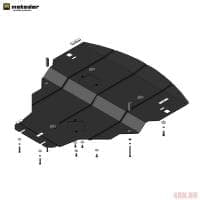 Защита двигателя артикул 08005 от российского производителя Мотодор. Разработана специально для автомобиля Infiniti M 2010-2014. Крепеж поставляется в комплекте. Стали толщиной 1,5 мм достаточно для городских и загородных условий дорог.