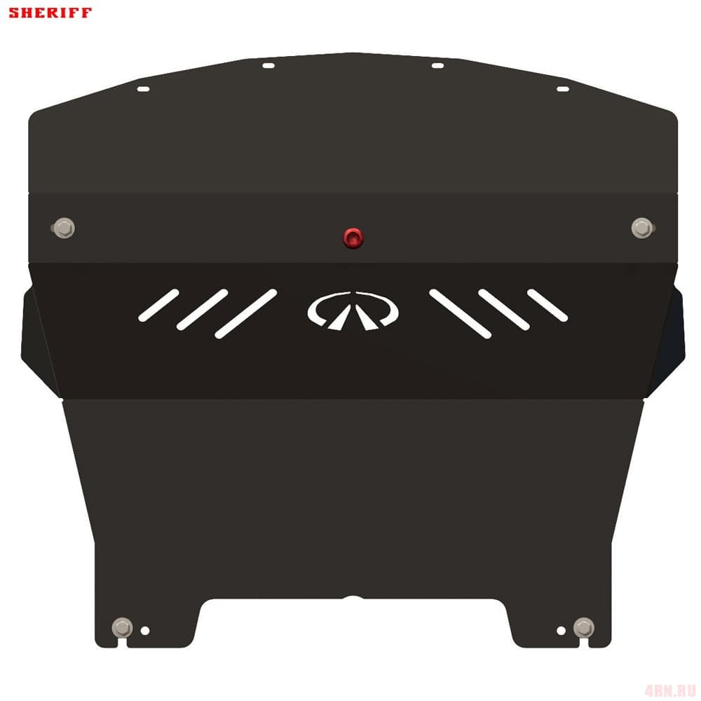 Защита картера артикул 15.1916 от российского производителя Шериф. Разработана специально для автомобиля Infiniti M 2010-2014.