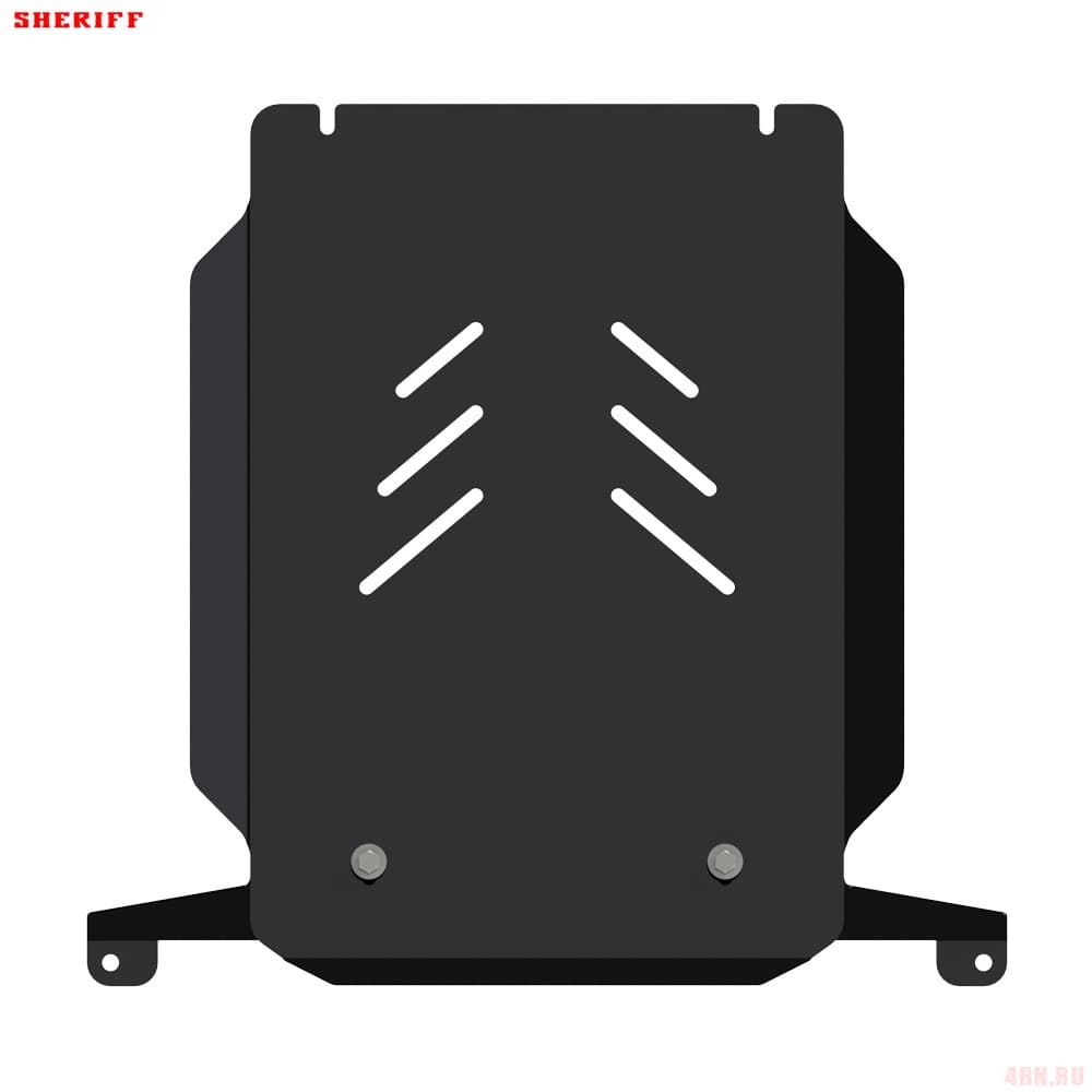 Защита картера Sheriff нужна для сохранности узлов и агрегатов, находящихся на днище авто. Она надежно защитит двигательный отсек вашей машины от повреждений. Также она защищает моторный отсек от влаги, грязи, и предусматривает наличие металлических крыльев, которые выполняют функцию пыльника.