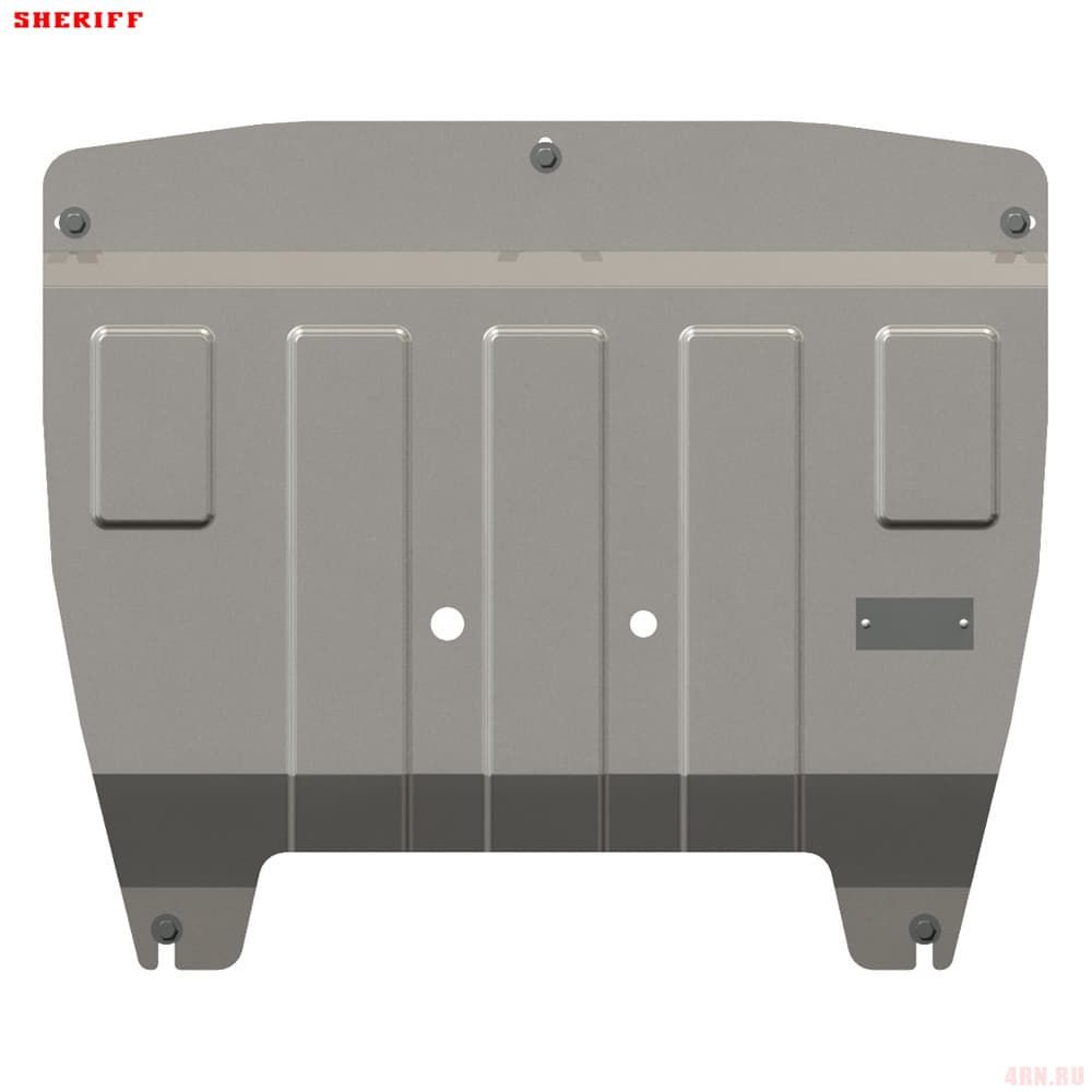 Защита картера Sheriff нужна для сохранности узлов и агрегатов, находящихся на днище авто. Она надежно защитит двигательный отсек вашей машины от повреждений. Также она защищает моторный отсек от влаги, грязи, и предусматривает наличие металлических крыльев, которые выполняют функцию пыльника.