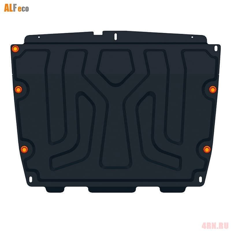 Защита для защита картера и кпп от производителя ALFeco, состоит из 1 листа и крепежа, материал - сталь толщиной 2.0 мм, подходит для автомобилей с двигателем объемом - все, привод - все, кпп - все.