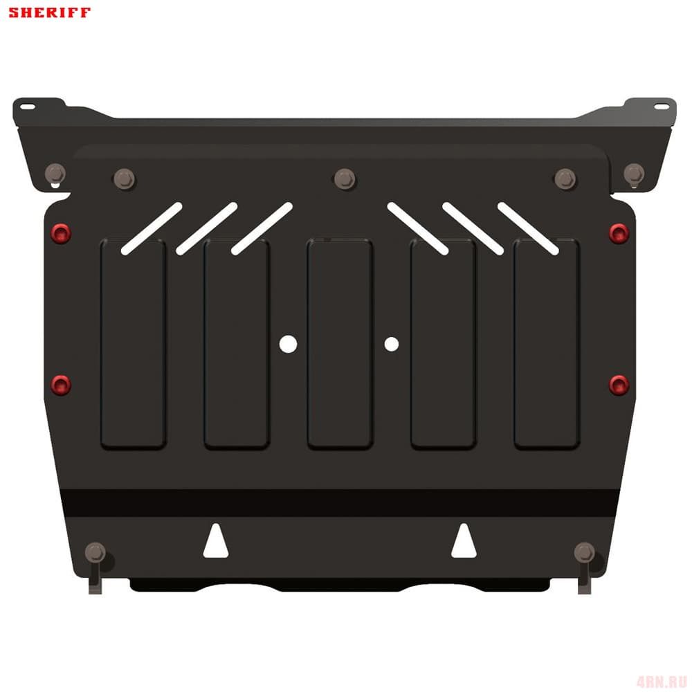 Защита картера Sheriff нужна для сохранности узлов и агрегатов, находящихся на днище авто. Она надежно защитит двигательный отсек вашей машины от повреждений. Также она защищает моторный отсек от влаги, грязи, и предусматривает наличие металлических крыльев, которые выполняют функцию пыльника.