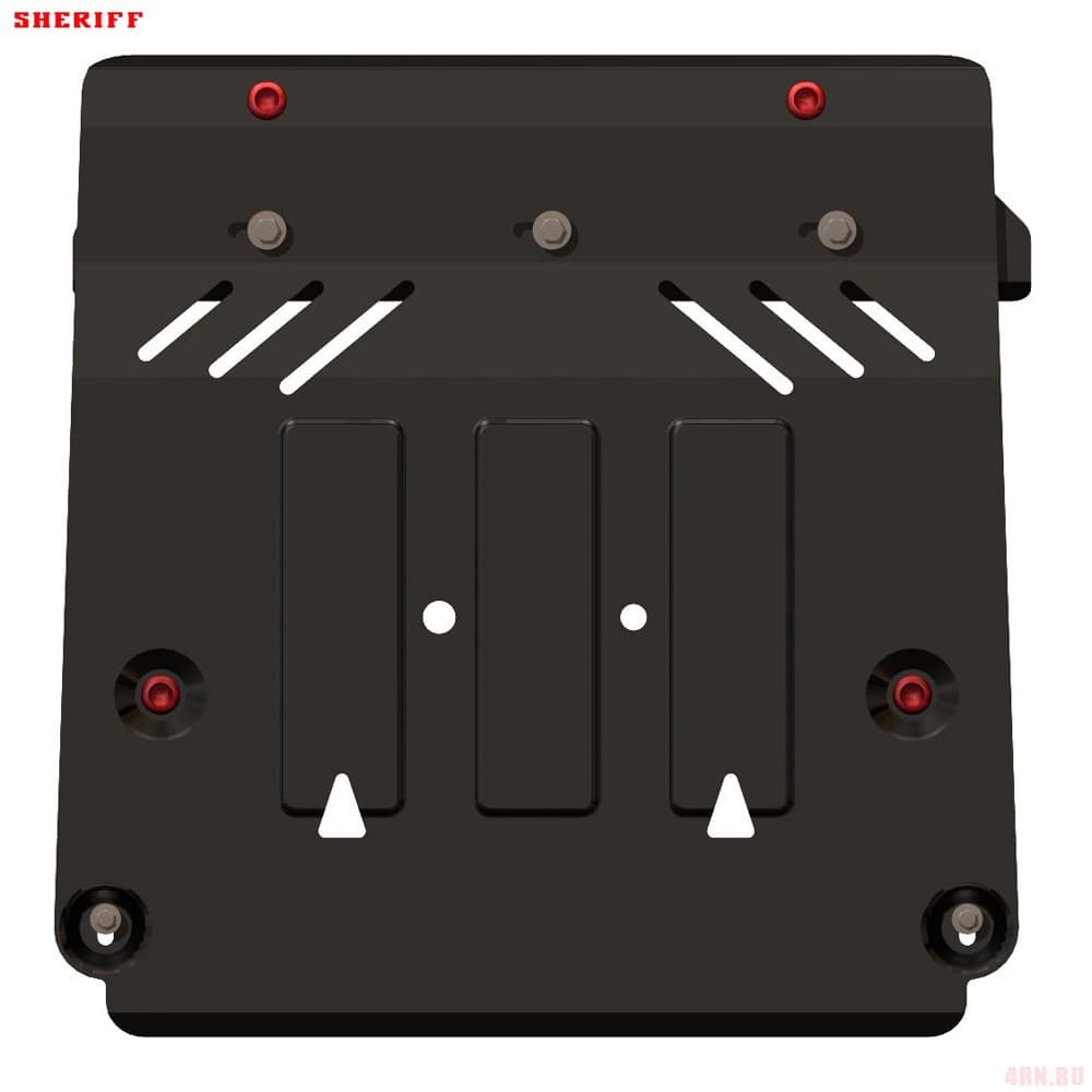 Защита картера Sheriff нужна для сохранности узлов и агрегатов, находящихся на днище авто. Она надежно защитит двигательный отсек вашей машины от повреждений. Также она защищает моторный отсек от влаги, грязи, и предусматривает наличие металлических крыльев, которые выполняют функцию пыльника.