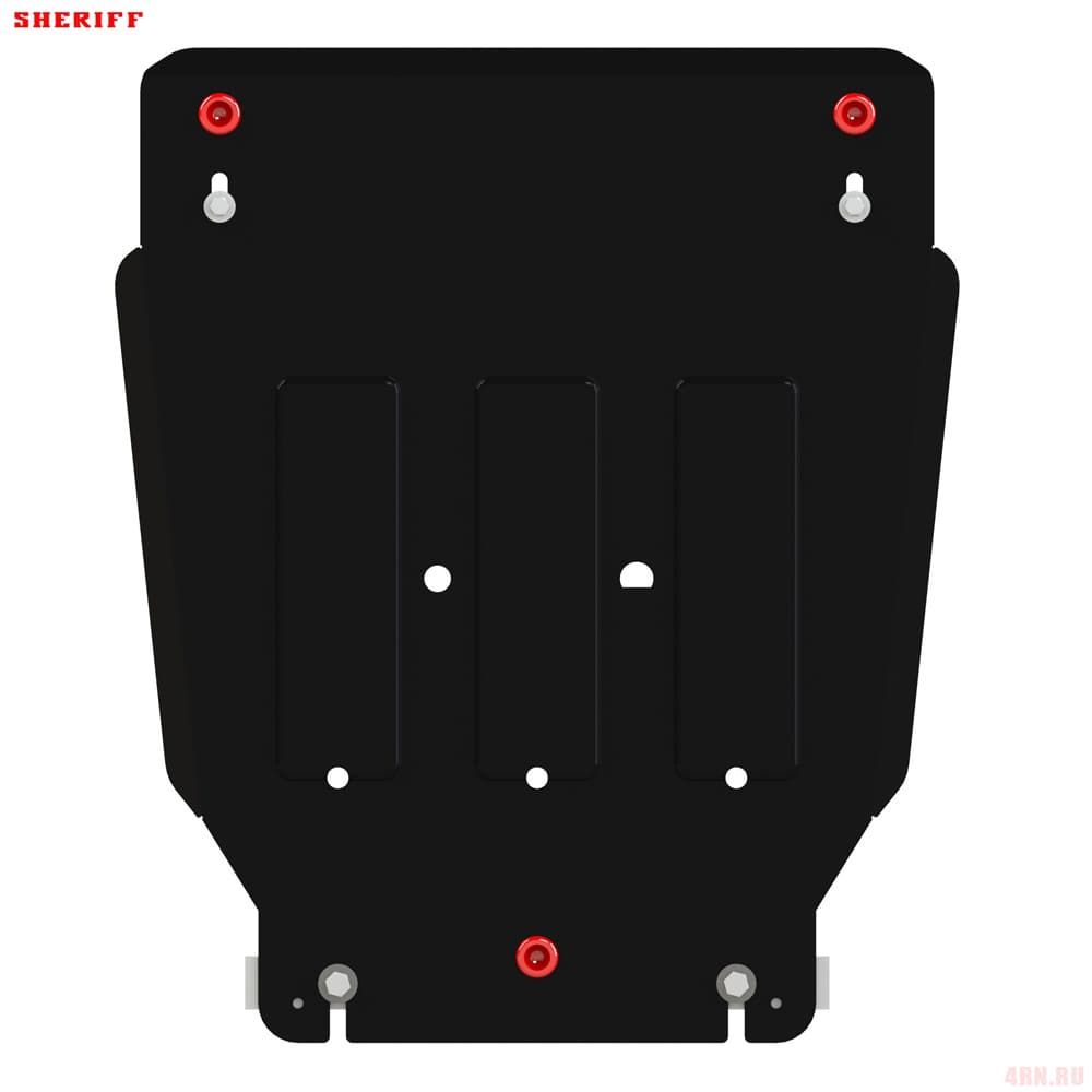 Защита картера Sheriff нужна для сохранности узлов и агрегатов, находящихся на днище авто. Она надежно защитит двигательный отсек вашей машины от повреждений. Также она защищает моторный отсек от влаги, грязи, и предусматривает наличие металлических крыльев, которые выполняют функцию пыльника.