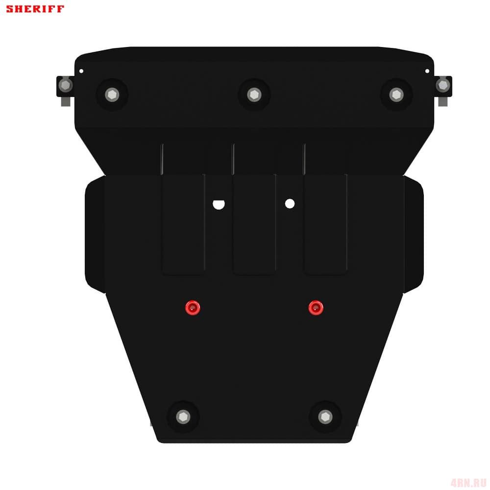 Защита картера Sheriff нужна для сохранности узлов и агрегатов, находящихся на днище авто. Она надежно защитит двигательный отсек вашей машины от повреждений. Также она защищает моторный отсек от влаги, грязи, и предусматривает наличие металлических крыльев, которые выполняют функцию пыльника.