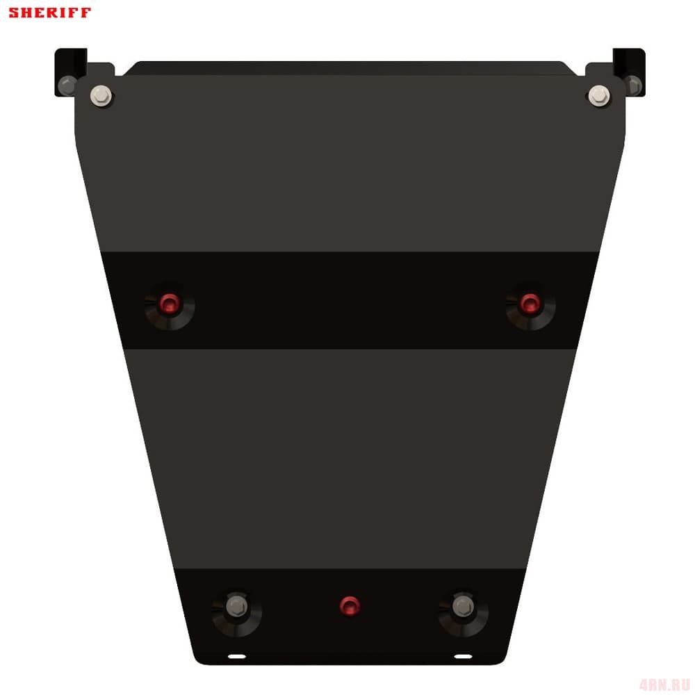 Защита картера Sheriff нужна для сохранности узлов и агрегатов, находящихся на днище авто. Она надежно защитит двигательный отсек вашей машины от повреждений. Также она защищает моторный отсек от влаги, грязи, и предусматривает наличие металлических крыльев, которые выполняют функцию пыльника.