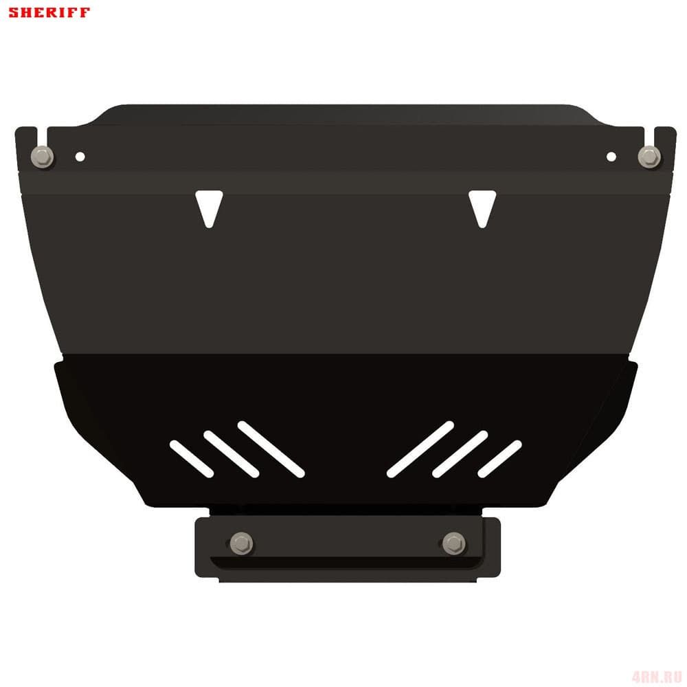 Защита картера Sheriff нужна для сохранности узлов и агрегатов, находящихся на днище авто. Она надежно защитит двигательный отсек вашей машины от повреждений. Также она защищает моторный отсек от влаги, грязи, и предусматривает наличие металлических крыльев, которые выполняют функцию пыльника.