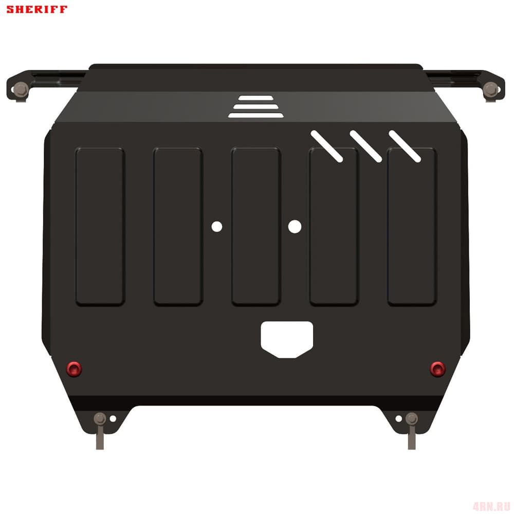 Защита картера Sheriff нужна для сохранности узлов и агрегатов, находящихся на днище авто. Она надежно защитит двигательный отсек вашей машины от повреждений. Также она защищает моторный отсек от влаги, грязи, и предусматривает наличие металлических крыльев, которые выполняют функцию пыльника.