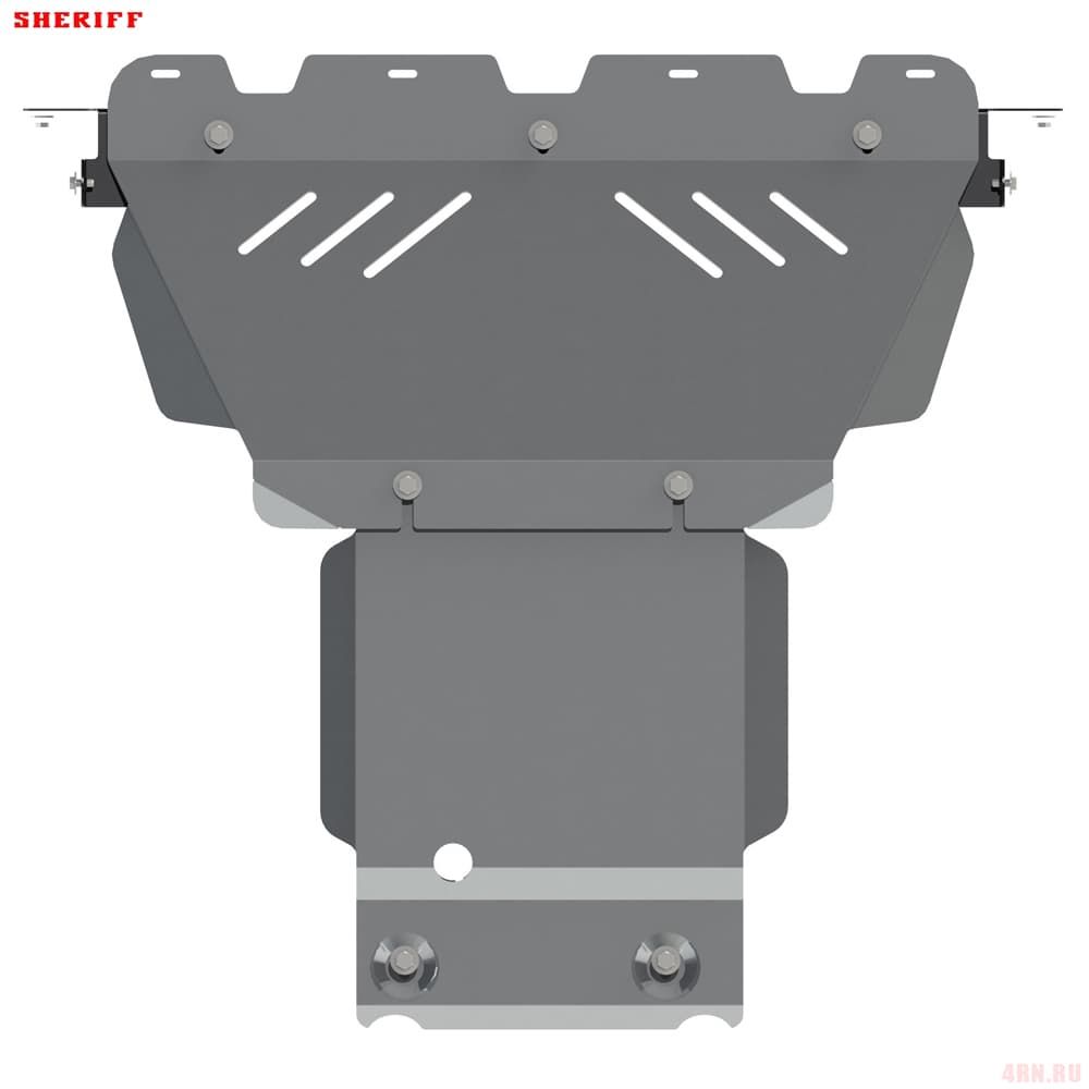 Защита картера Sheriff нужна для сохранности узлов и агрегатов, находящихся на днище авто. Она надежно защитит двигательный отсек вашего автомобиля от повреждений. Также она защищает моторный отсек от влаги и грязи, и предусматривает наличие металлических крыльев, которые выполняют функцию пыльника.