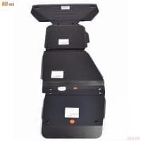 Стальная защита изготавливается из холоднокатаной стали толщиной 2,0-2,5мм, что является отличительной особенностью, нашим конкурентным преимуществом перед другими производителями, использующими более дешевую, горячекатаную сталь за частую не предназначенную для данного типа изделий. Потому как горячекатаная сталь сильнее подвержена коррозийным свойствам, структура данной стали не пластична, что критично сказывается при ударе.