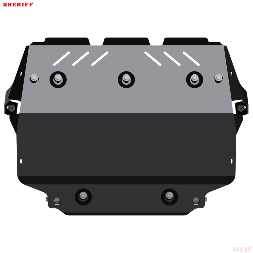 Защита картера Sheriff нужна для сохранности узлов и агрегатов, находящихся на днище авто. Она надежно защитит двигательный отсек вашей машины от повреждений. Также она защищает моторный отсек от влаги, грязи, и предусматривает наличие металлических крыльев, которые выполняют функцию пыльника.