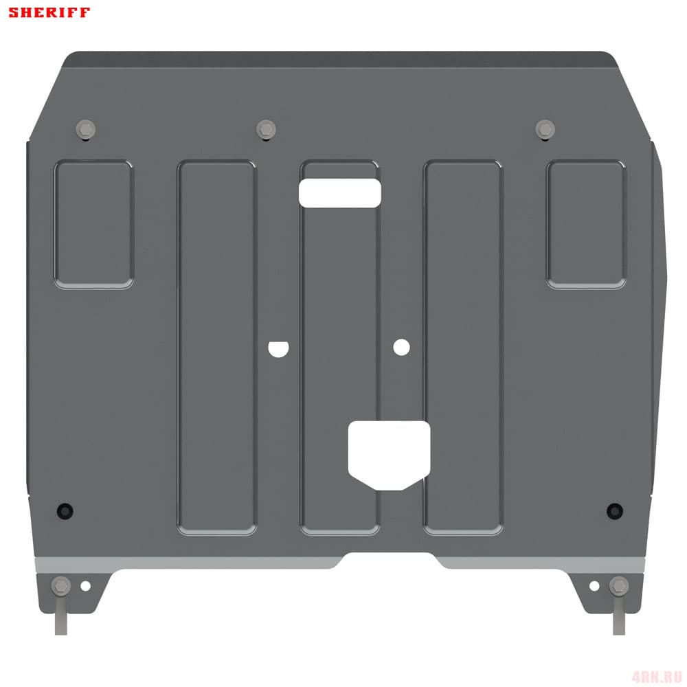 Защита картера Sheriff нужна для сохранности узлов и агрегатов, находящихся на днище авто. Она надежно защитит двигательный отсек вашего автомобиля от повреждений. Также она защищает моторный отсек от влаги и грязи, и предусматривает наличие металлических крыльев, которые выполняют функцию пыльника.