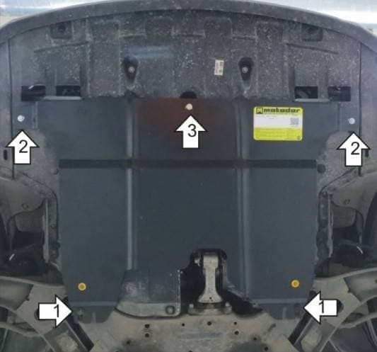 Защита двигателя и кпп артикул 51009 от российского производителя Мотодор. Разработана специально для автомобиля Kia Ceed 2012-2018. Крепеж поставляется в комплекте. Стали толщиной 1,5 мм достаточно для городских и загородных условий дорог.