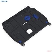 Порошковое окрашивание гарантирует долгий срок службы. А глубокий штамп увеличивает жесткость до 2,5 раз. Также имеется утопленный крепеж для предотвращения срывов. Качественная покраска защиты картера выдерживает 720 часов соляного тумана. Толщина изделия составляет 2-6 мм. Подштамповка в местах крепления предохраняет крепеж от срезания. Деталь спроектирована индивидуально для вашего автомобиля, что позволяет устанавливать ее в штатные места без доработки кузова за 10 мин.