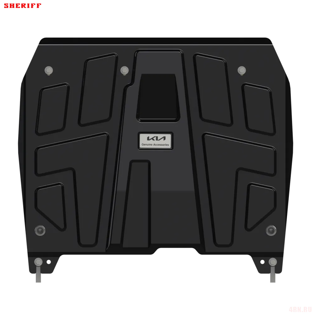 Защита картера Sheriff нужна для сохранности узлов и агрегатов, находящихся на днище авто. Она надежно защитит двигательный отсек вашей машины от повреждений. Также она защищает моторный отсек от влаги, грязи, и предусматривает наличие металлических крыльев, которые выполняют функцию пыльника.
