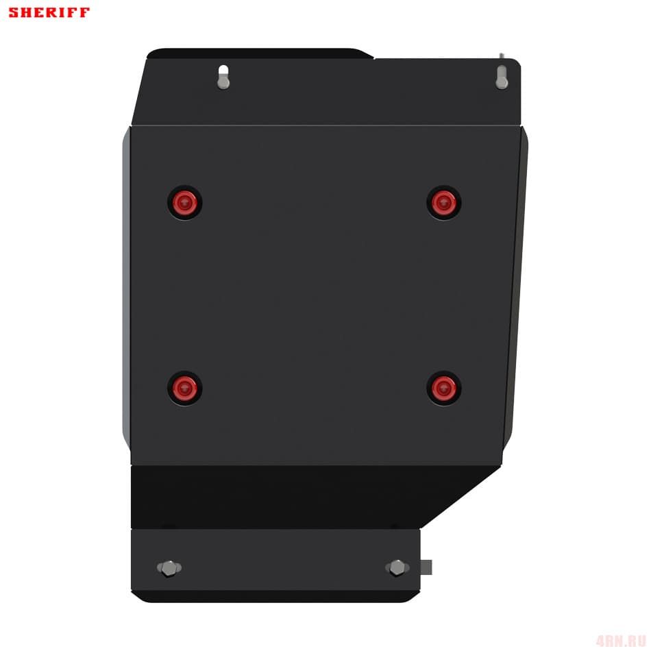 Защита картера Sheriff нужна для сохранности узлов и агрегатов, находящихся на днище авто. Она надежно защитит двигательный отсек вашей машины от повреждений. Также она защищает моторный отсек от влаги, грязи, и предусматривает наличие металлических крыльев, которые выполняют функцию пыльника.