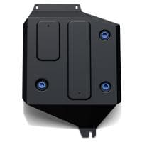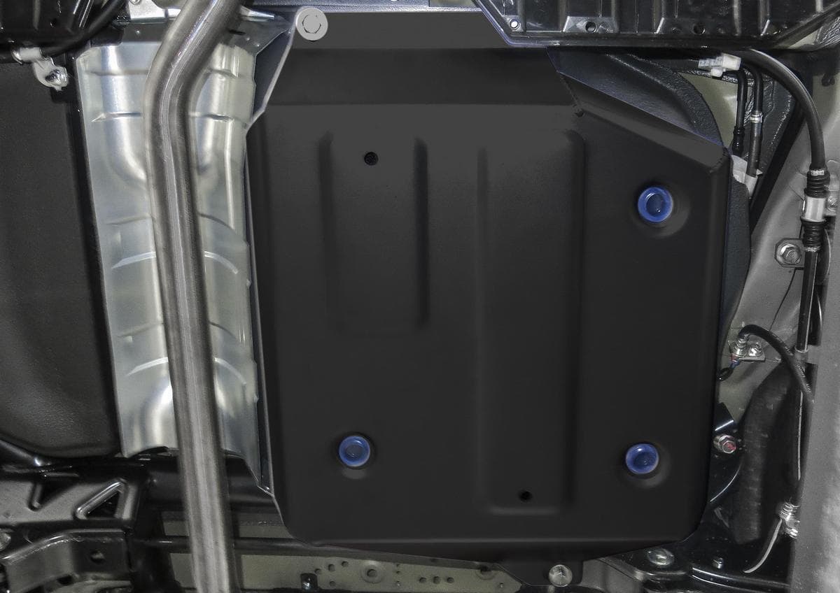 Порошковое окрашивание гарантирует долгий срок службы. А глубокий штамп увеличивает жесткость до 2,5 раз. Также имеется утопленный крепеж для предотвращения срывов. Качественная покраска защиты картера выдерживает 720 часов соляного тумана. Толщина изделия составляет 2-6 мм. Подштамповка в местах крепления предохраняет крепеж от срезания. Деталь спроектирована индивидуально для вашего автомобиля, что позволяет устанавливать ее в штатные места без доработки кузова за 10 мин.