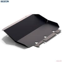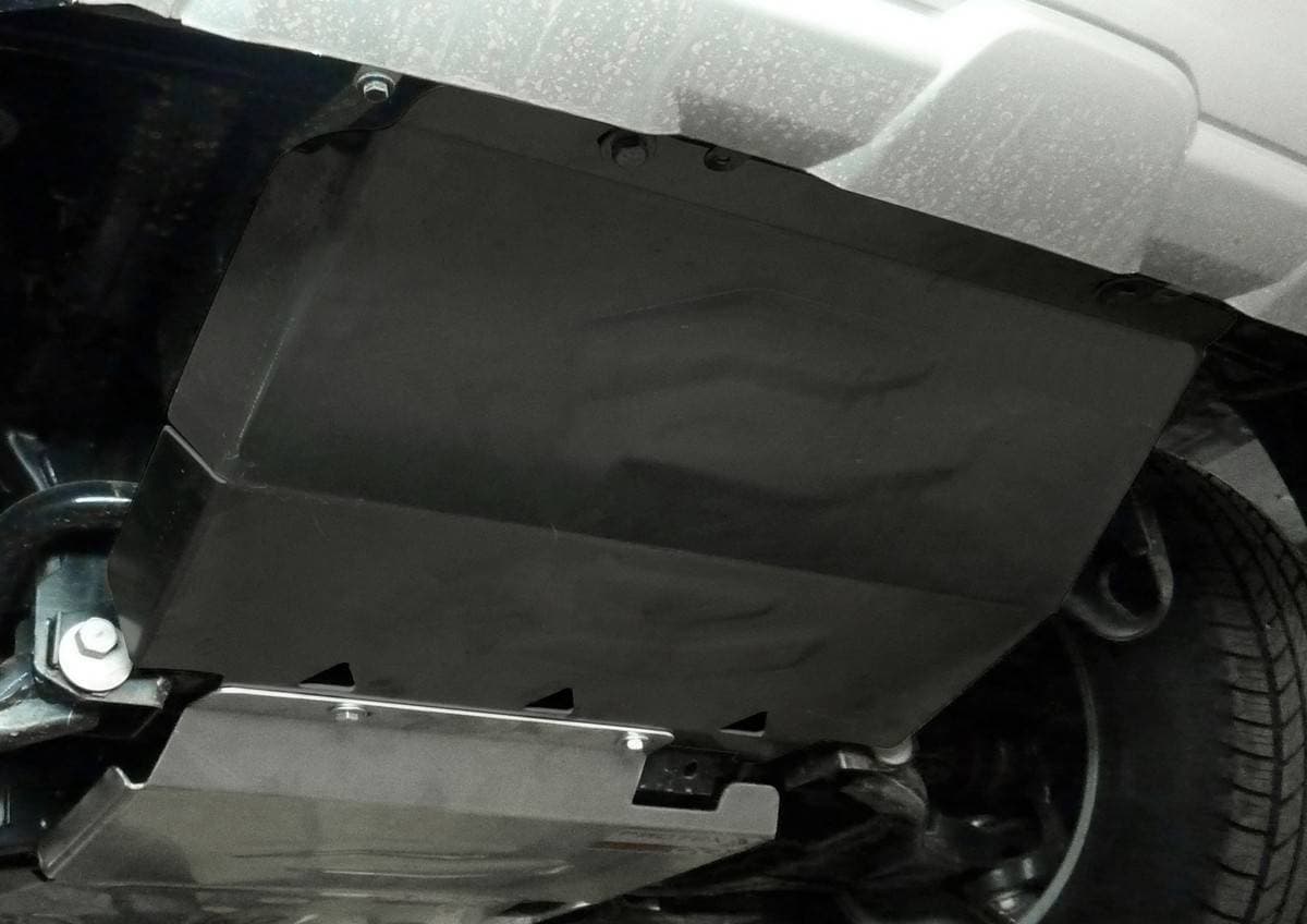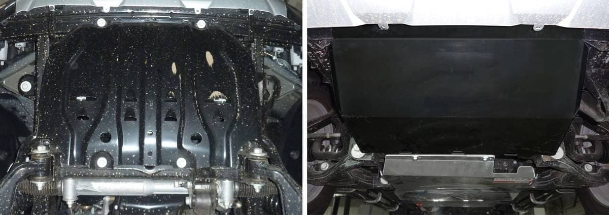 Порошковое окрашивание гарантирует долгий срок службы. А глубокий штамп увеличивает жесткость до 2,5 раз. Также имеется утопленный крепеж для предотвращения срывов. Качественная покраска защиты картера выдерживает 720 часов соляного тумана. Толщина изделия составляет 2-6 мм. Подштамповка в местах крепления предохраняет крепеж от срезания. Деталь спроектирована индивидуально для вашего автомобиля, что позволяет устанавливать ее в штатные места без доработки кузова за 10 мин.