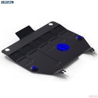 Порошковое окрашивание гарантирует долгий срок службы. А глубокий штамп увеличивает жесткость до 2,5 раз. Также имеется утопленный крепеж для предотвращения срывов. Качественная покраска защиты картера выдерживает 720 часов соляного тумана. Толщина изделия составляет 2-6 мм. Подштамповка в местах крепления предохраняет крепеж от срезания. Деталь спроектирована индивидуально для вашего автомобиля, что позволяет устанавливать ее в штатные места без доработки кузова за 10 мин.