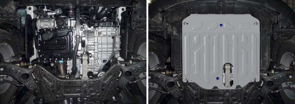 Стойкое порошковое окрашивание позволяет сохранить внешний вид, защитит от царапин, предотвратит коррозию. Также имеется утопленный крепеж для предотвращения срывов. Крепеж не образует с алюминием гальваническую пару. Защита спроектирована индивидуально для автомобиля, что позволяет устанавливать ее в штатные места без доработки кузова за 10 мин.