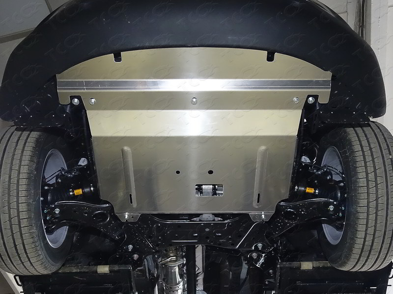 Алюминиевая защита двигателя и коробки передач артикул ZKTCC00311 от российского производителя ТСС. Подходит для Киа Соренто 2012-2019х годов выпуска. Защита состоит из одного листа и крепежа в комплекте Алюминия толщиной 4,0 мм достаточно для комфортного передвижения без опасений за автомобиль, вес ее 12 кг.