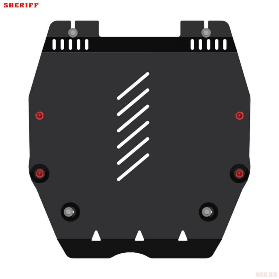 Защита картера Sheriff нужна для сохранности узлов и агрегатов, находящихся на днище авто. Она надежно защитит двигательный отсек вашей машины от повреждений. Также она защищает моторный отсек от влаги, грязи, и предусматривает наличие металлических крыльев, которые выполняют функцию пыльника.