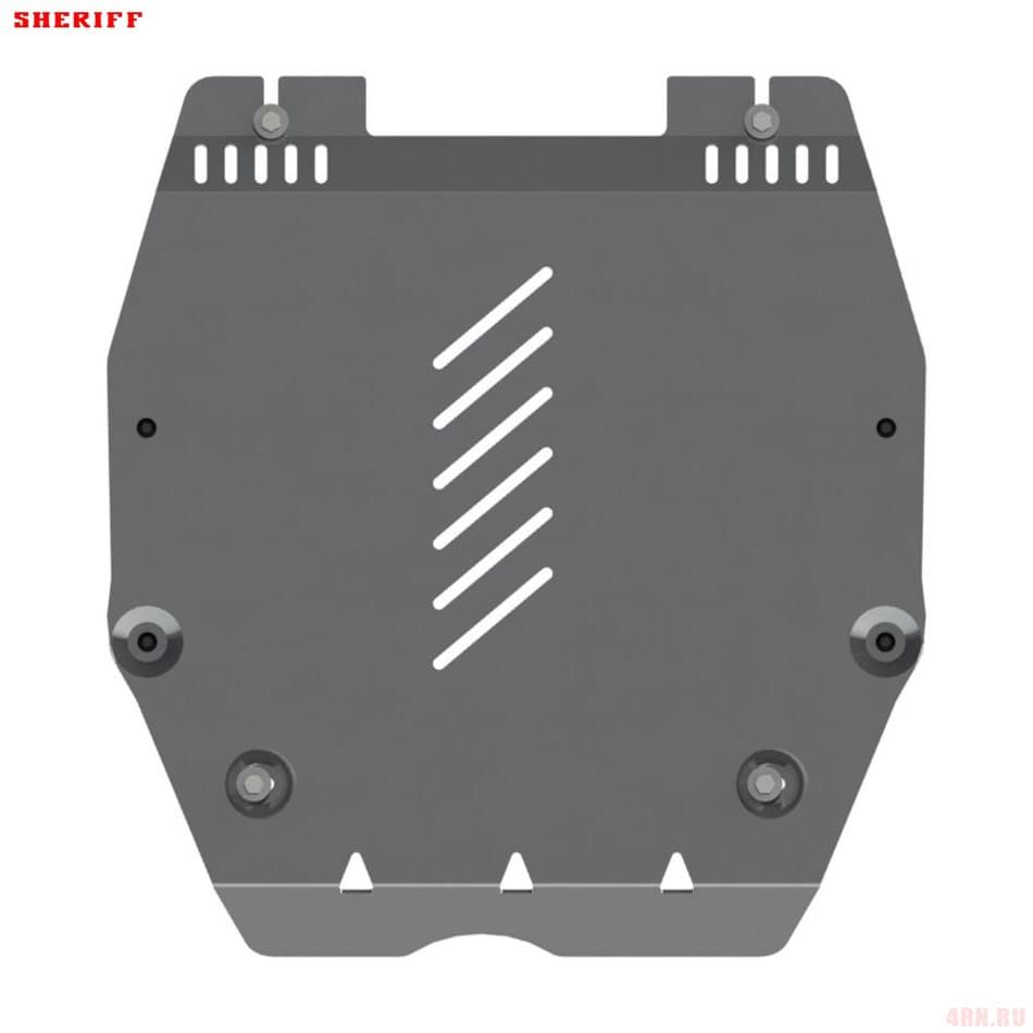 Защита картера Sheriff нужна для сохранности узлов и агрегатов, находящихся на днище авто. Она надежно защитит двигательный отсек вашего автомобиля от повреждений. Также она защищает моторный отсек от влаги и грязи, и предусматривает наличие металлических крыльев, которые выполняют функцию пыльника.