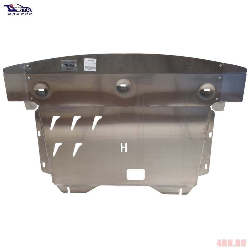 Алюминиевая защита двигателя и кпп с крепежом в комплекте, артикул 10.13ABC от российского производителя АВС Дизайн. Разработана специально для автомобиля Hyundai Santa Fe 2012-2018.
