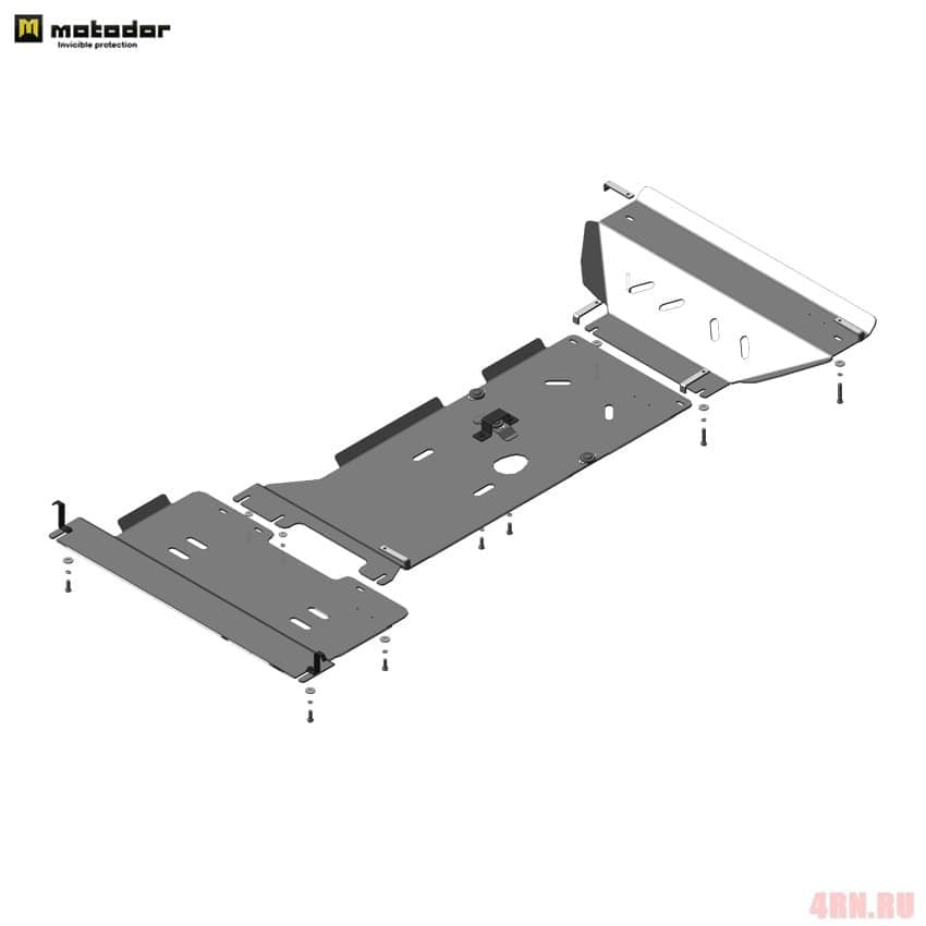 Алюминиевая защита двигателя, радиатора, кпп, дифференциала с крепежом в комплекте, артикул 32901 от российского производителя Мотодор. Разработана специально для автомобиля Dodge Ram 1500 2009-2017.