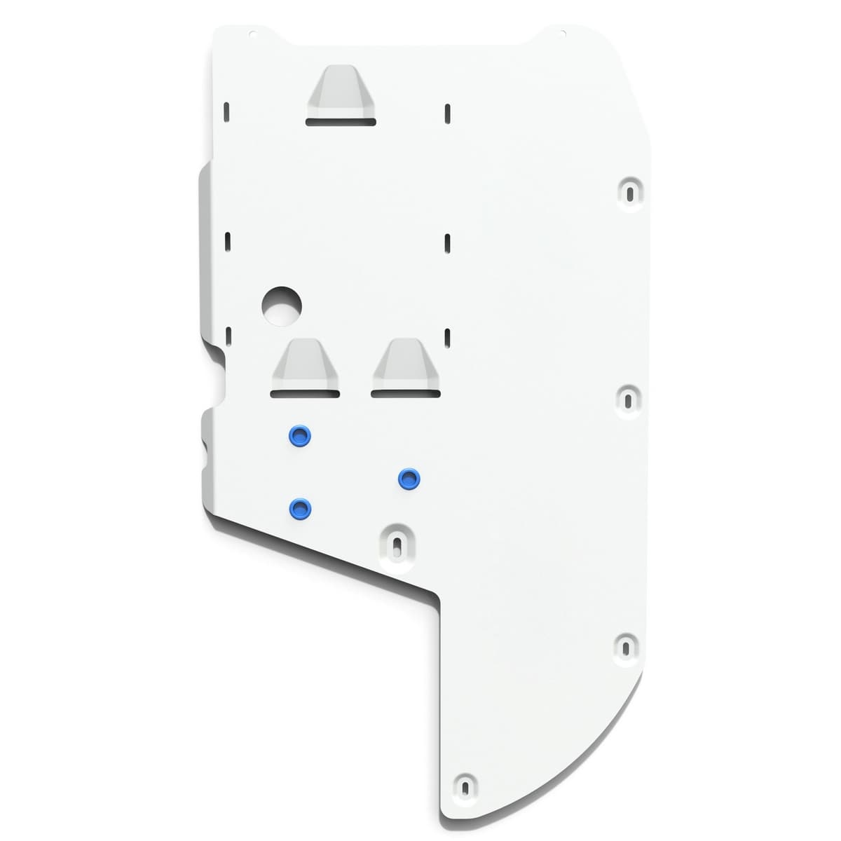 Стойкое порошковое окрашивание позволяет сохранить внешний вид, защитит от царапин, предотвратит коррозию. Также имеется утопленный крепеж для предотвращения срывов. Крепеж не образует с алюминием гальваническую пару. Защита спроектирована индивидуально для автомобиля, что позволяет устанавливать ее в штатные места без доработки кузова за 10 мин.