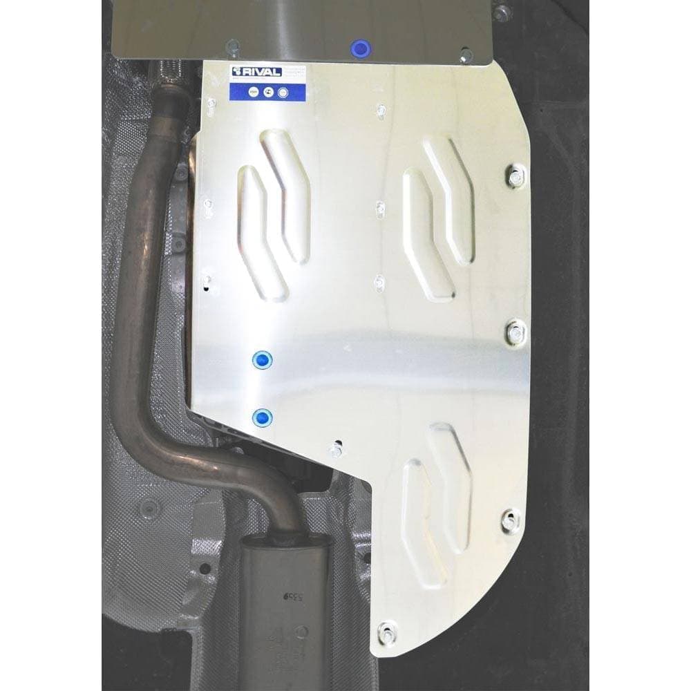Защита Rival произведена из высококачественного алюминия. Она надежно предохраняет днище вашего автомобиля от различных повреждений при наезде на бордюры, выступающие канализационные люки, кромки поврежденного асфальта или при ремонте дорог.