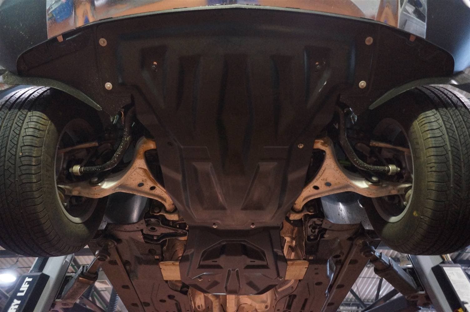 Защита двигателя и коробки передач артикул 13.01k от российского производителя АВС-Дизайн. Подходит для Мерседес M W166 2011-2015х годов выпуска. Защита состоит из двух листов и крепежа в комплекте, без отверстия для слива масла. Карбон толщиной 10 мм приятно удивит своим весом, только 14 кг.