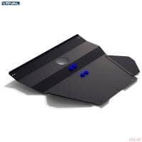 Порошковое окрашивание гарантирует долгий срок службы. А глубокий штамп увеличивает жесткость до 2,5 раз. Также имеется утопленный крепеж для предотвращения срывов. Качественная покраска защиты картера выдерживает 720 часов соляного тумана. Толщина изделия составляет 2-6 мм. Подштамповка в местах крепления предохраняет крепеж от срезания. Деталь спроектирована индивидуально для вашего автомобиля, что позволяет устанавливать ее в штатные места без доработки кузова за 10 мин.