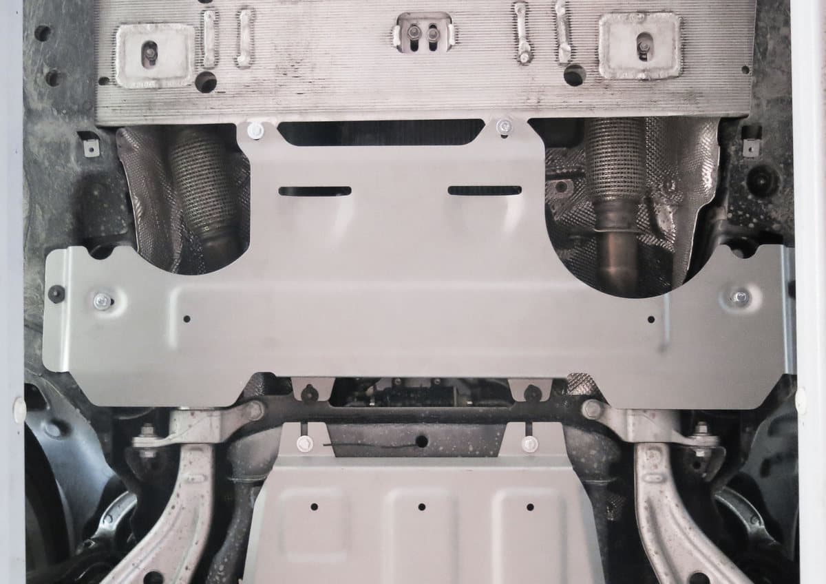 Стойкое порошковое окрашивание позволяет сохранить внешний вид, защитит от царапин, предотвратит коррозию. Также имеется утопленный крепеж для предотвращения срывов. Крепеж не образует с алюминием гальваническую пару. Защита спроектирована индивидуально для автомобиля, что позволяет устанавливать ее в штатные места без доработки кузова за 10 мин.