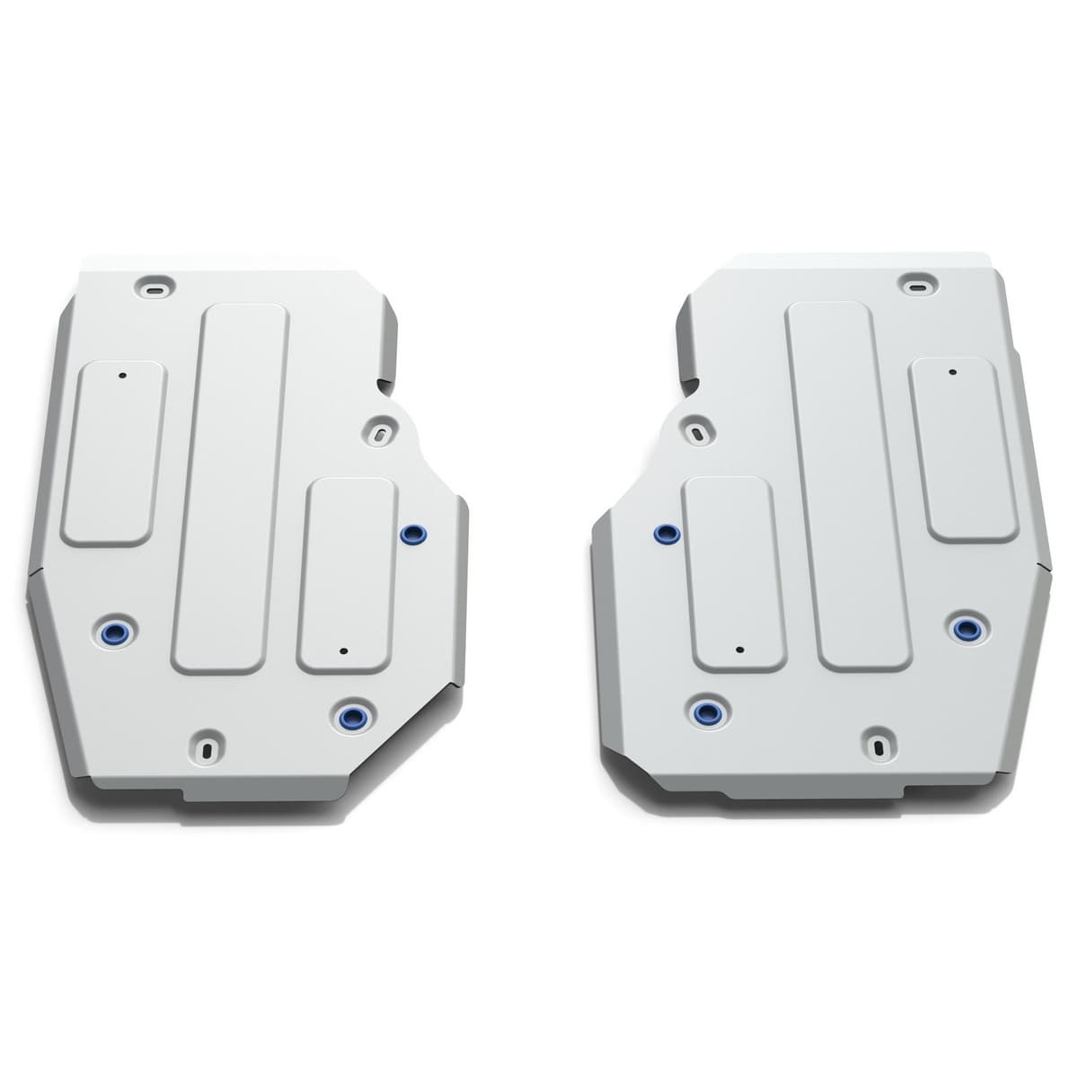 Стойкое порошковое окрашивание позволяет сохранить внешний вид, защитит от царапин, предотвратит коррозию. Также имеется утопленный крепеж для предотвращения срывов. Крепеж не образует с алюминием гальваническую пару. Защита спроектирована индивидуально для автомобиля, что позволяет устанавливать ее в штатные места без доработки кузова за 10 мин.
