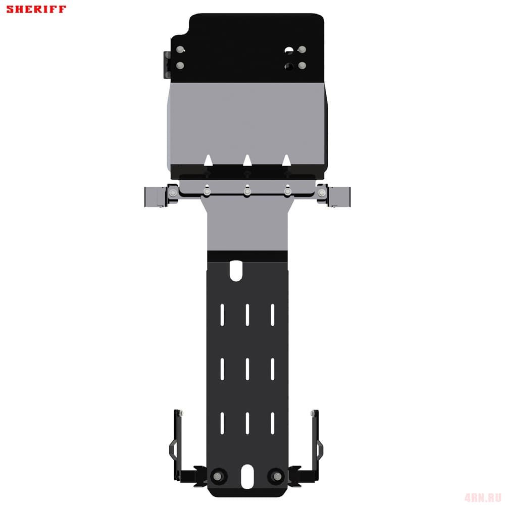 Защита картера Sheriff нужна для сохранности узлов и агрегатов, находящихся на днище авто. Она надежно защитит двигательный отсек вашей машины от повреждений. Также она защищает моторный отсек от влаги, грязи, и предусматривает наличие металлических крыльев, которые выполняют функцию пыльника.