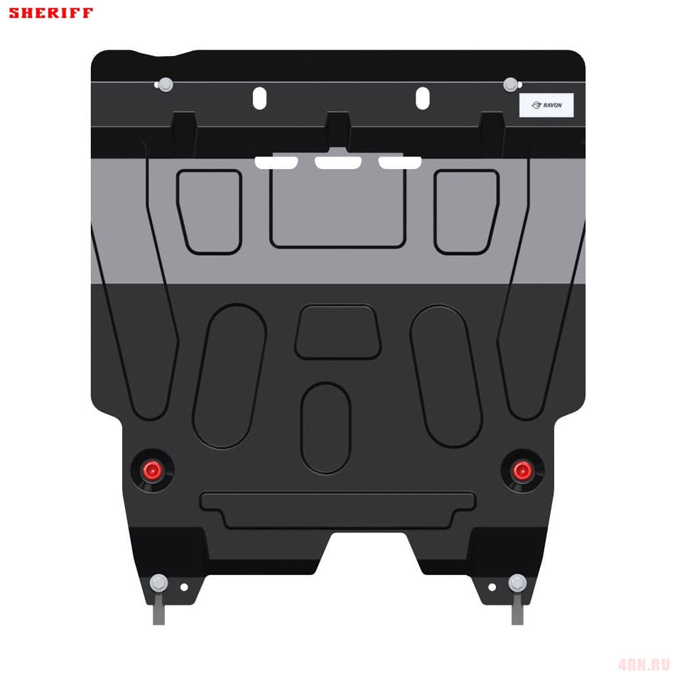 Защита картера Sheriff нужна для сохранности узлов и агрегатов, находящихся на днище авто. Она надежно защитит двигательный отсек вашей машины от повреждений. Также она защищает моторный отсек от влаги, грязи, и предусматривает наличие металлических крыльев, которые выполняют функцию пыльника.