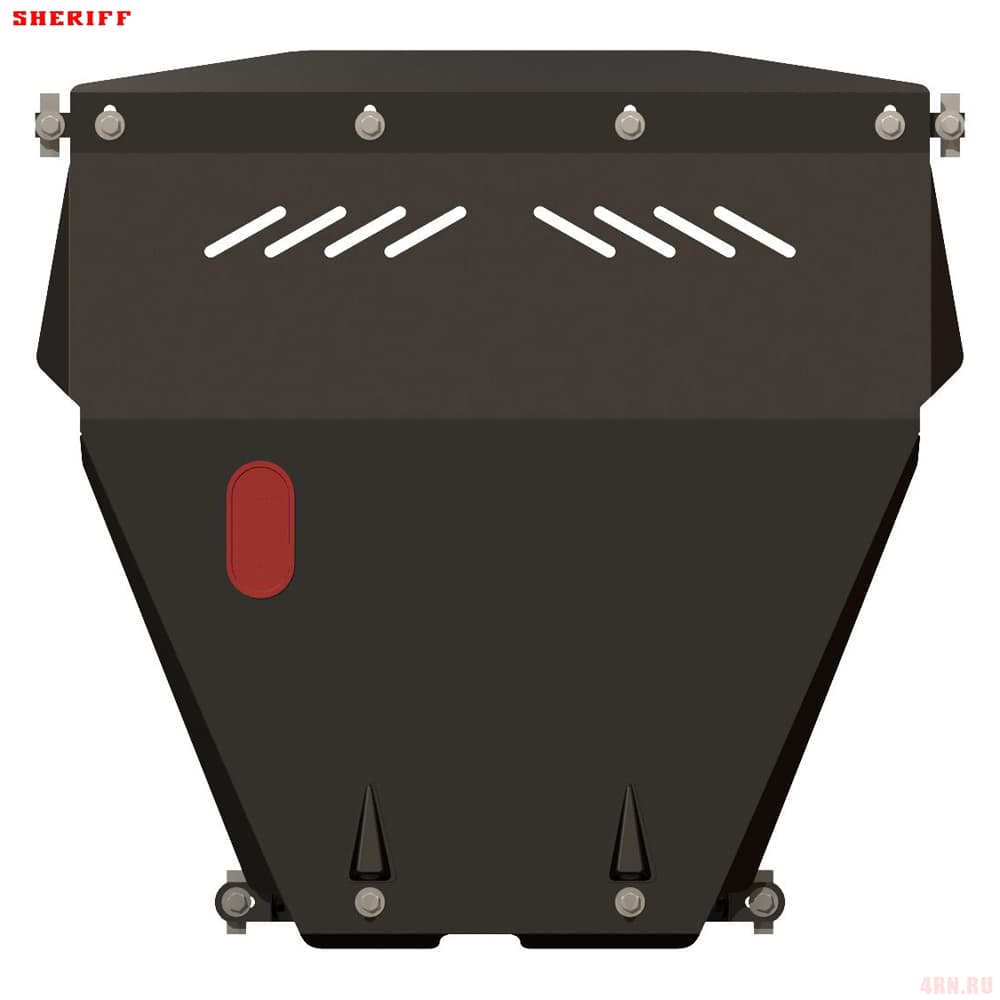 Защита картера Sheriff нужна для сохранности узлов и агрегатов, находящихся на днище авто. Она надежно защитит двигательный отсек вашей машины от повреждений. Также она защищает моторный отсек от влаги, грязи, и предусматривает наличие металлических крыльев, которые выполняют функцию пыльника.