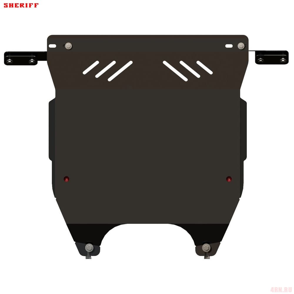 Защита картера Sheriff нужна для сохранности узлов и агрегатов, находящихся на днище авто. Она надежно защитит двигательный отсек вашей машины от повреждений. Также она защищает моторный отсек от влаги, грязи, и предусматривает наличие металлических крыльев, которые выполняют функцию пыльника.