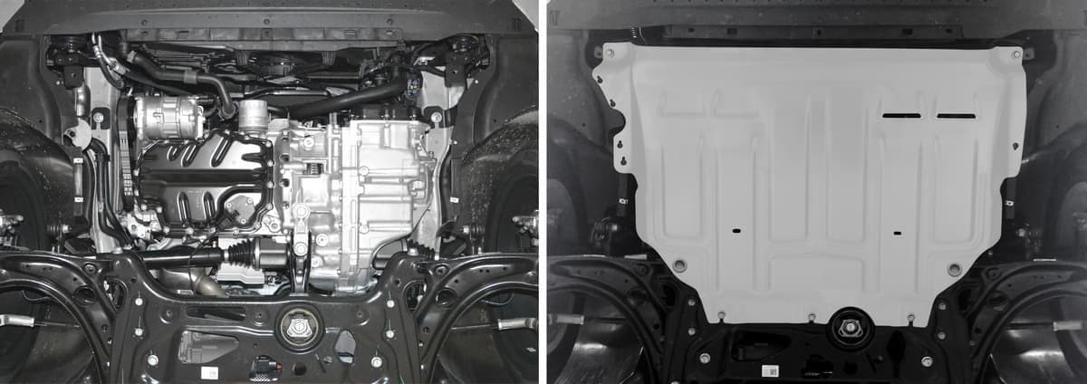 - Защита отлично отводит тепло от двигателя своей поверхностью, что спасает двигатель от перегрева в летний период или при высоких нагрузках.