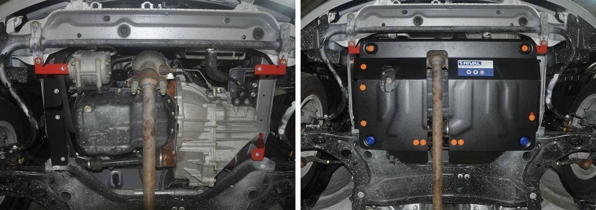 Защита картера Rival изготовлена из высококачественной стали. Защищает поддон вашего автомобиля от различных повреждений при наезде на бордюры, выступающие канализационные люки, кромки поврежденного асфальта или при ремонте дорог.