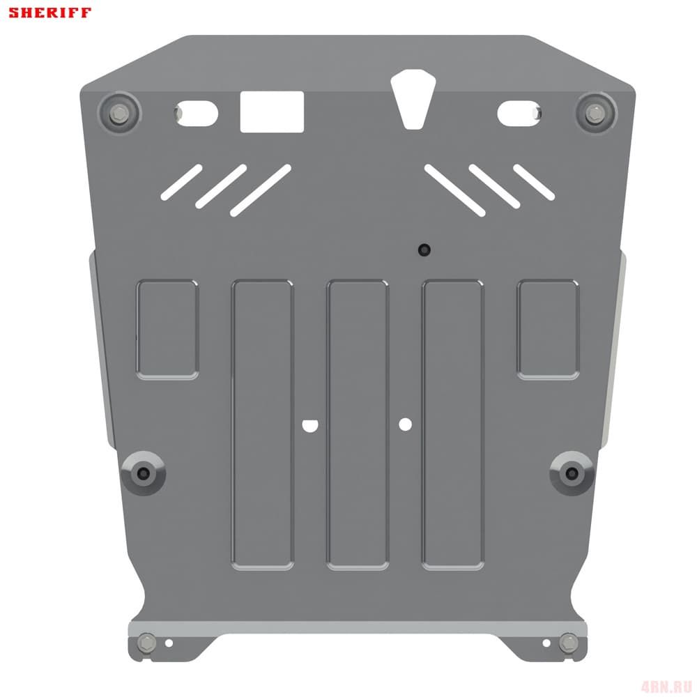 Защита картера Sheriff нужна для сохранности узлов и агрегатов, находящихся на днище авто. Она надежно защитит двигательный отсек вашего автомобиля от повреждений. Также она защищает моторный отсек от влаги и грязи, и предусматривает наличие металлических крыльев, которые выполняют функцию пыльника.