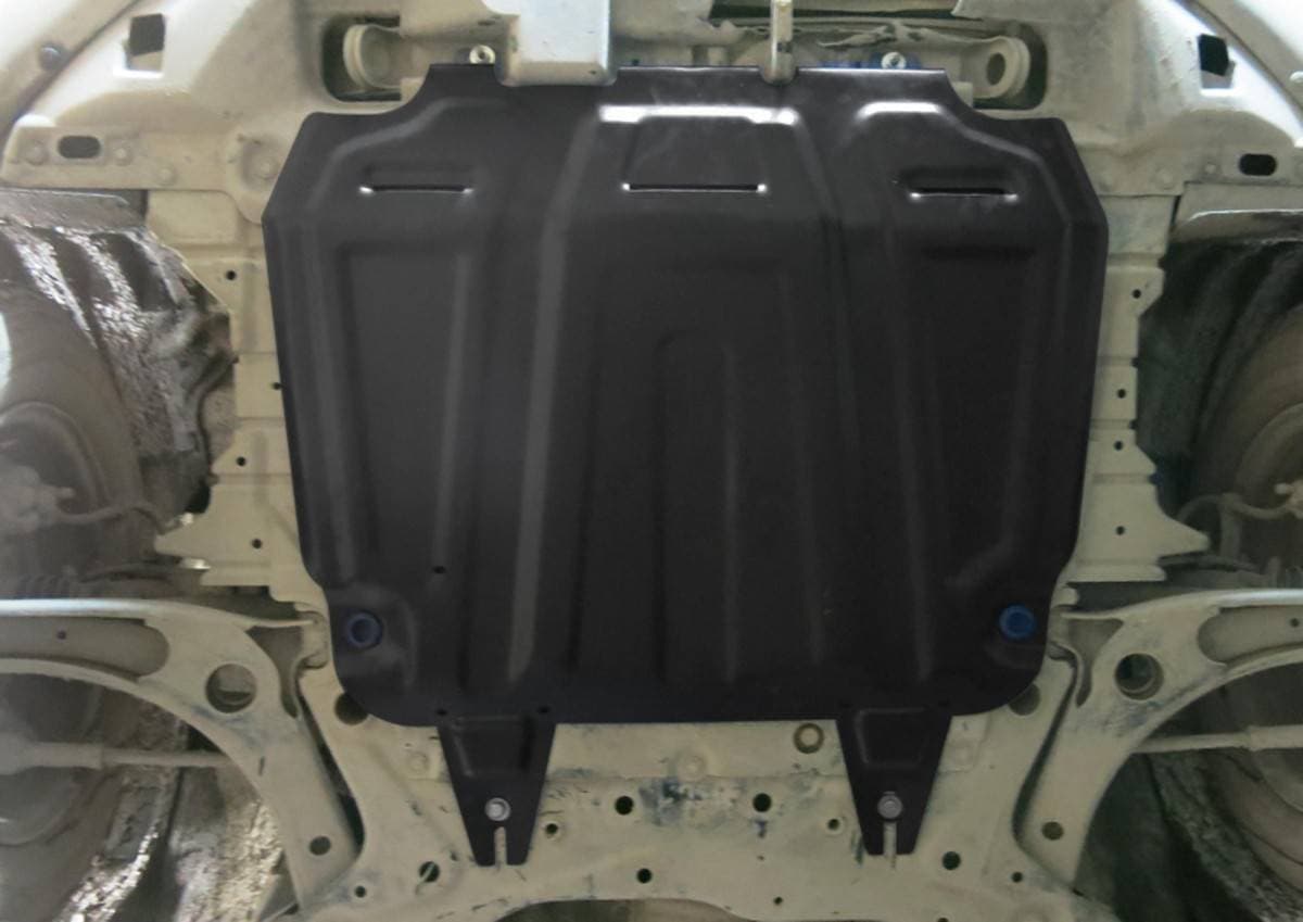 Порошковое окрашивание гарантирует долгий срок службы. А глубокий штамп увеличивает жесткость до 2,5 раз. Также имеется утопленный крепеж для предотвращения срывов. Качественная покраска защиты картера выдерживает 720 часов соляного тумана. Толщина изделия составляет 2-6 мм. Подштамповка в местах крепления предохраняет крепеж от срезания. Деталь спроектирована индивидуально для вашего автомобиля, что позволяет устанавливать ее в штатные места без доработки кузова за 10 мин.