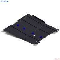 Порошковое окрашивание гарантирует долгий срок службы. А глубокий штамп увеличивает жесткость до 2,5 раз. Также имеется утопленный крепеж для предотвращения срывов. Качественная покраска защиты картера выдерживает 720 часов соляного тумана. Толщина изделия составляет 2-6 мм. Подштамповка в местах крепления предохраняет крепеж от срезания. Деталь спроектирована индивидуально для вашего автомобиля, что позволяет устанавливать ее в штатные места без доработки кузова за 10 мин.